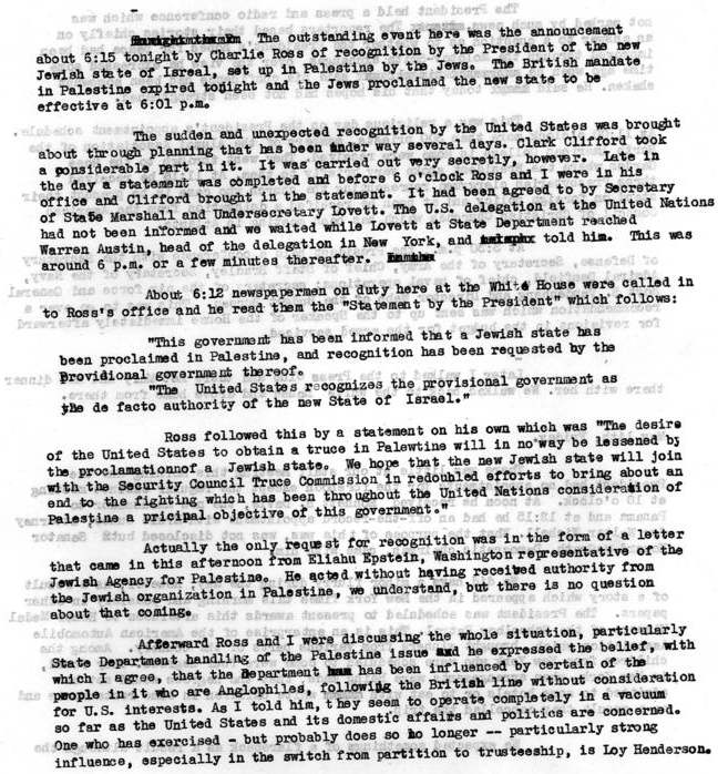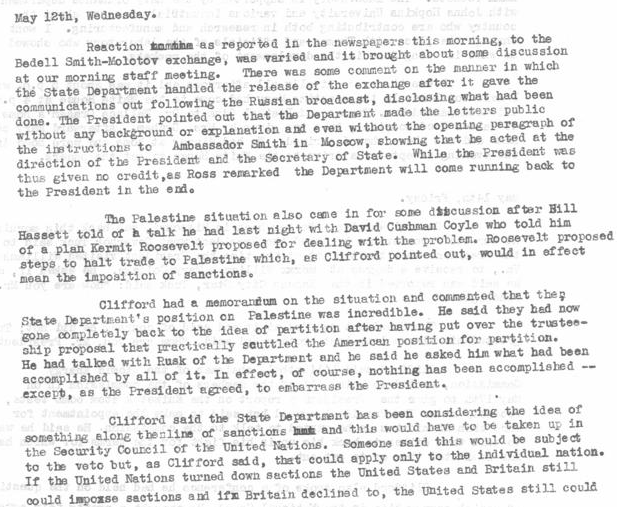 - excerpts from diary of White House aide Eben Ayers, 12-14 May 1948: