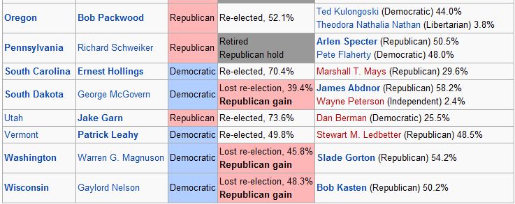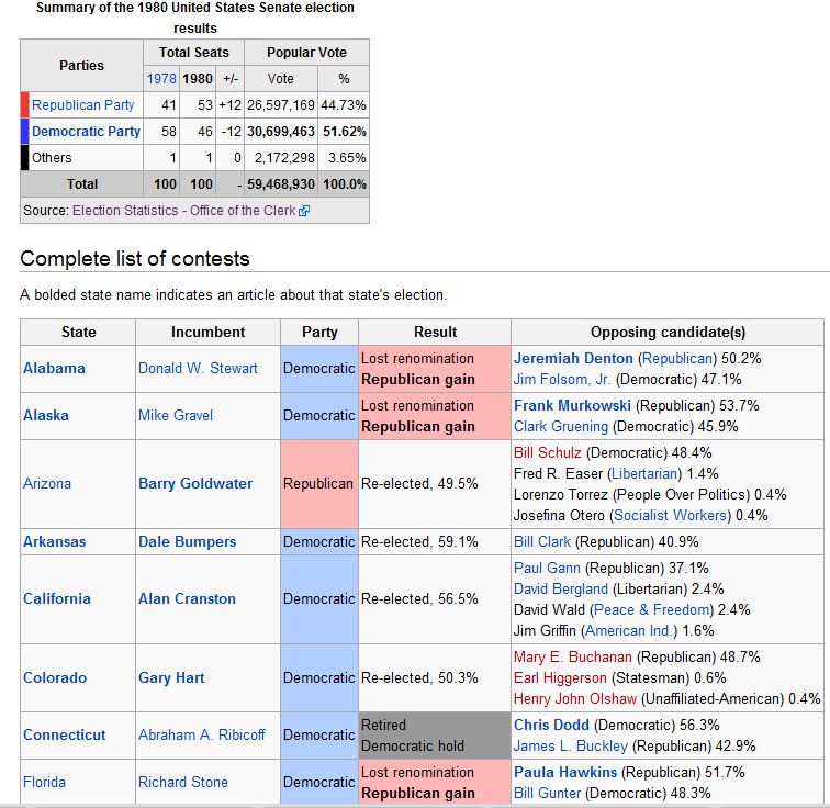 1980 Senate Results (Republicans take control of Senate for first time since 1954 elections):