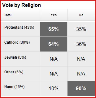 Prop. 8 exit poll (a yes vote was to ban same-sex marriage):